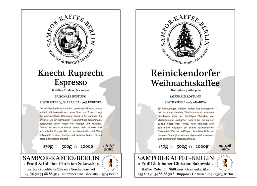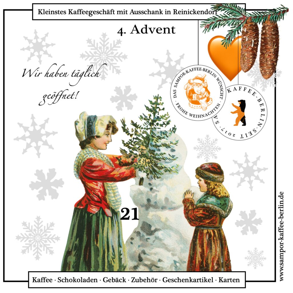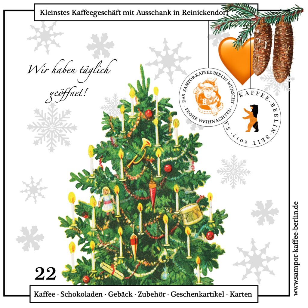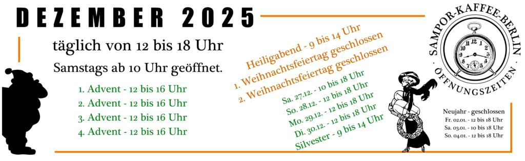 Liebe Gäste, Nachbarn und Freunde des SAMPOR-KAFFEE-BERLIN aus Heiligensee, benachbarten Ortsteilen und Brandenburg – am 1. Dezember wird das Erste Türchen in diesem Jahr geöffnet werden.