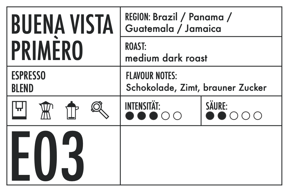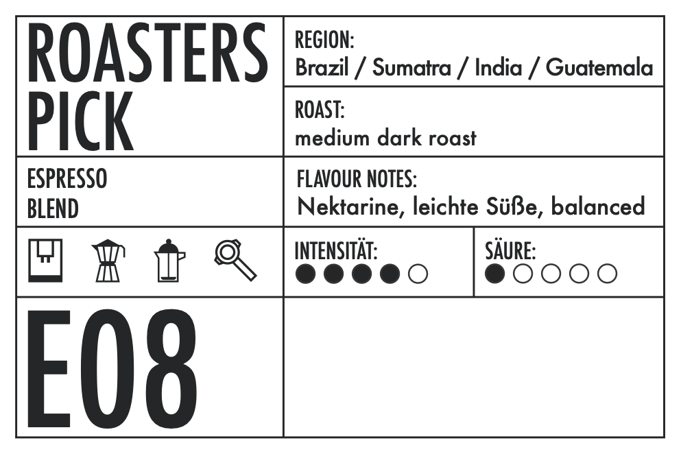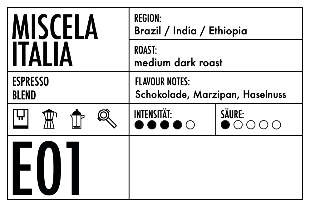 - E03. – Mailänder Espresso (60/40), eher kräftig.