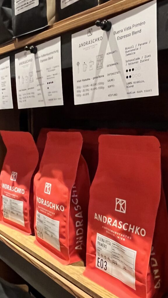Neu ist auch die ANDRASCHKO – KAFFEEMANUFAKTUR aus Berlin-Tempelhof. Geröstet in Berlin, inspiriert von Wien. Ab dem kommenden Wochenende gibt es insgesamt 15 verschiedene Espresso-Röstungen im Sortiment, darunter auch 2 entkoffeinierte Espressi, Single Origin und verschiedene Blends. Es ist eine schöne Ergänzung da diese „BLENDS“ aus 100% Arabica bestehen, im Gegensatz zum Bestand großteils mit Robusta geblendet wird.