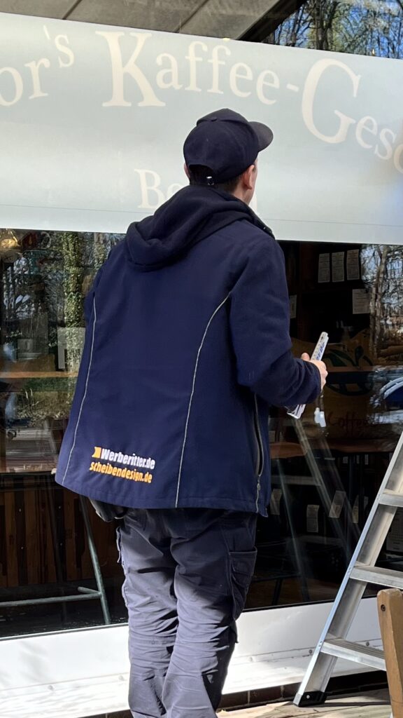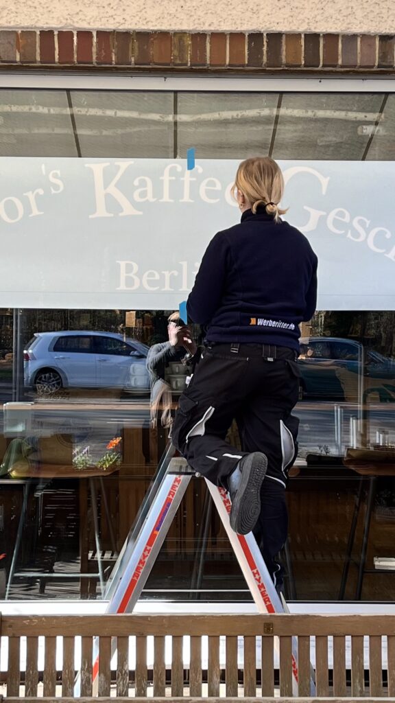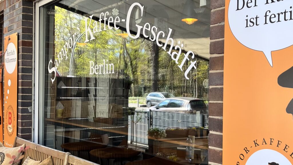 Der Schriftzug SAMPOR-KAFFEE-BERLIN mit der Espresso & Bree Bar ganz oben in Berlin, viel dem Spachtel zum Opfer. Vom legendären Schreibfehler „Kakako“ haben wir uns ebenfalls verabschiedet, da nicht nur das Schaufenster sondern auch die Schilder bzw. die Beschriftung an der Tür erneuert wurde.